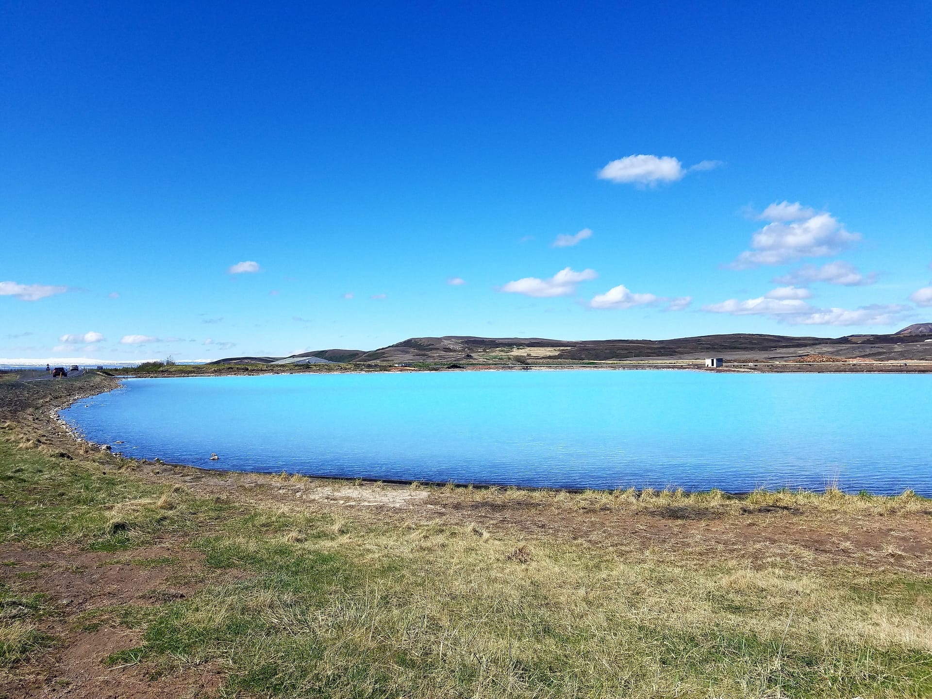 Озеро расположено среди скалистого ландшафта, образуя природные бассейны. Бирюзовая вода красиво контрастирует с окружающими камнями. Площадь озера небольшая, но есть несколько живописных смотровых точек. Вода поступает из геотермальной станции поблизости, придавая ей необычный цвет и температуру. Посетители часто останавливаются, чтобы полюбоваться отражениями и сделать фотографии этого необычного и эффектного озера.