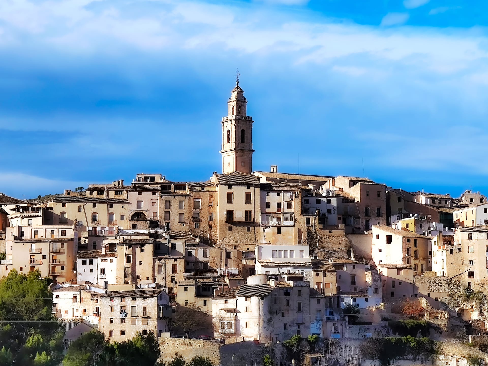 Бокайренте встроен в крутой скальный склон, где дома кажутся естественным продолжением утесов. Город развивается по вертикали: улицы превращаются в лестницы, а крыши — в смотровые площадки. Глубокие ущелья и карстовые образования окружают поселение, усиливая ощущение крепости. Горный ландшафт Сьерра-де-Мариола наполняет пространство ароматами трав, каменными фактурами и тишиной. Напротив города расположены загадочные Лес Коветес-дель-Морос — искусственные пещеры-окна в отвесной скале, назначение которых до сих пор неизвестно. Мощеные площади, каменные мосты и фасады сохраняют подлинную средневековую атмосферу горного города.