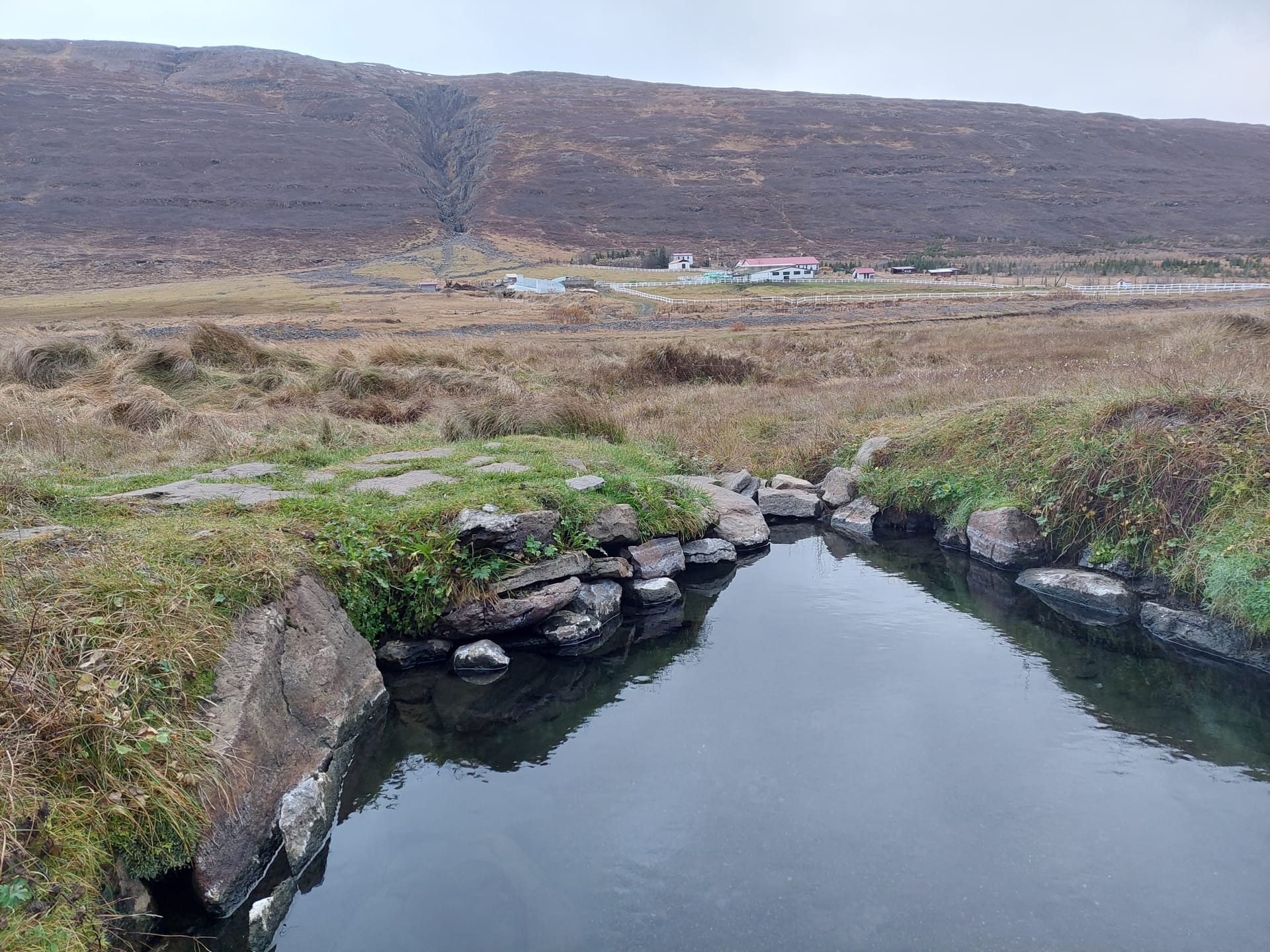 Геотермальная купальня Гальтахрёйджярлауг — небольшой источник, выложенный местными камнями и мхом, гармонично вписывающийся в долину. Источник находится на территории исторической фермы Хейстадюр. Температура воды обычно около 38–40°C, идеально для уединенного купания. Окружающий пейзаж тихий и суровый: крутые склоны с редкой северной растительностью и протекающий рядом ручей. Это место создает настоящий инопланетный опыт, оставляя посетителей наедине с духами исландских гор. Раздевалок нет, но старые постройки фермы иногда помогают переодеваться.
