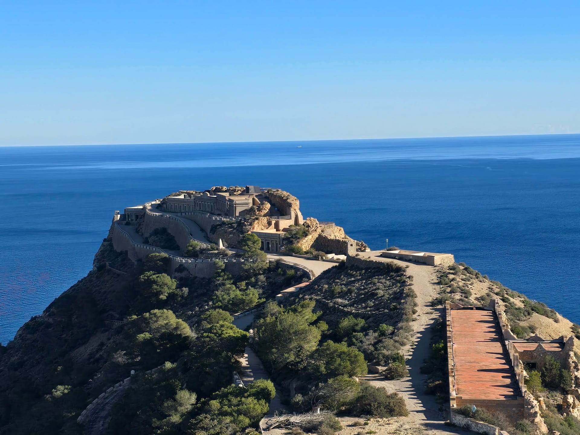 Смотровая площадка Хорель — это площадка на территории старой береговой батареи Кастильитос. Площадка нависает над обрывами высотой более двухсот метров, создавая ощущение полета. Отсюда открывается вид на дикое побережье залива Масаррон и открытое море. Выжженные солнцем скалы, глубокие тени и темно-синий горизонт формируют суровый пейзаж. Сочетание мощной военной архитектуры и первозданной природы придает месту особую монументальность.