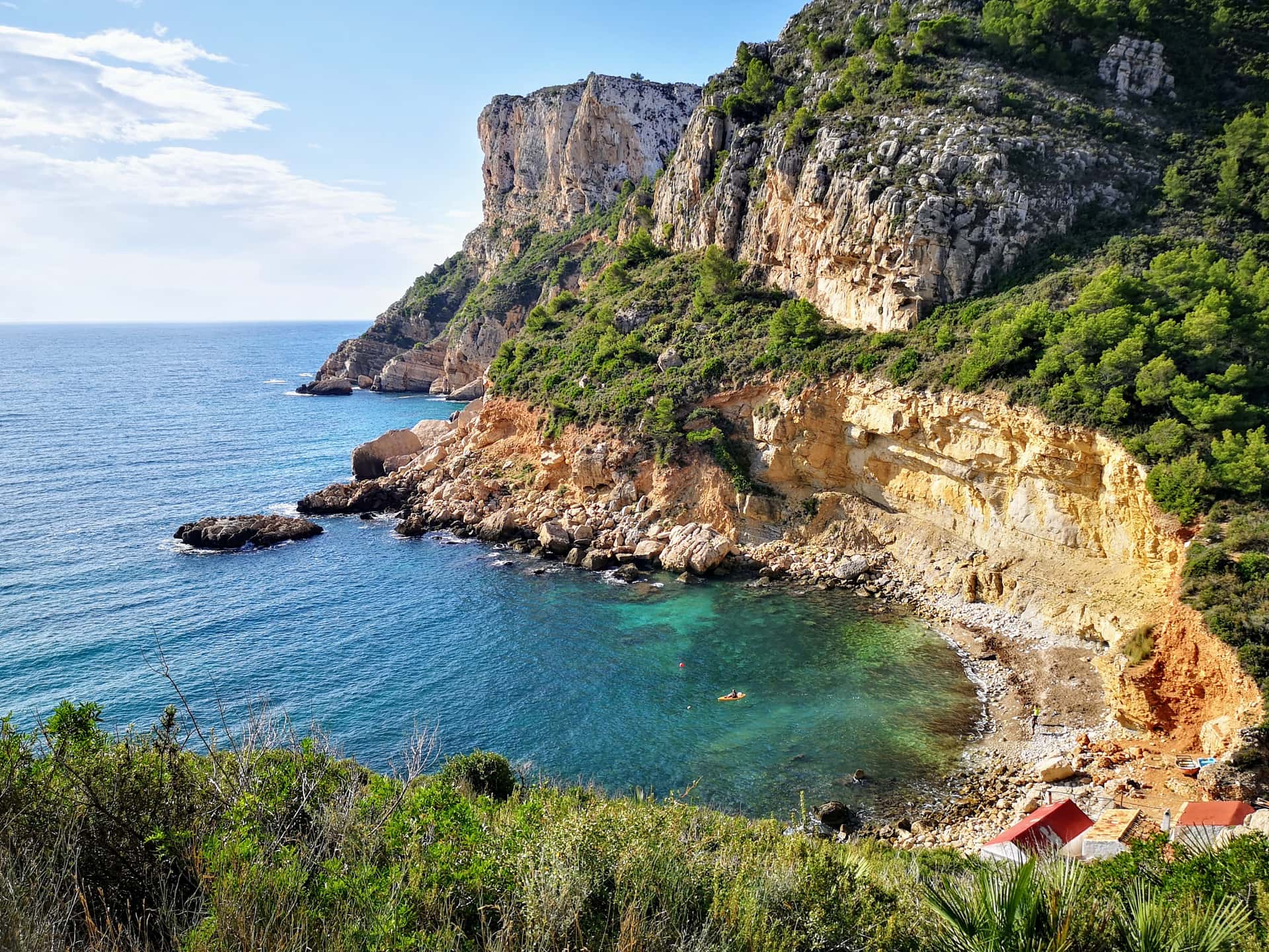 Бухта Льебейг — квинтэссенция дикого побережья Аликанте. Она расположена в устье ущелья Баранк де ла Виуда и зажата высокими скалами. Старинные рыбацкие хижины, вырубленные в скале, сохраняют атмосферу прошлого. Суровый пейзаж, редкие кустарники и глубокий синий цвет моря создают эффектный природный ансамбль. Добраться сюда можно только пешком по крутой тропе или по морю, что делает бухту уединённым раем для любителей природы.