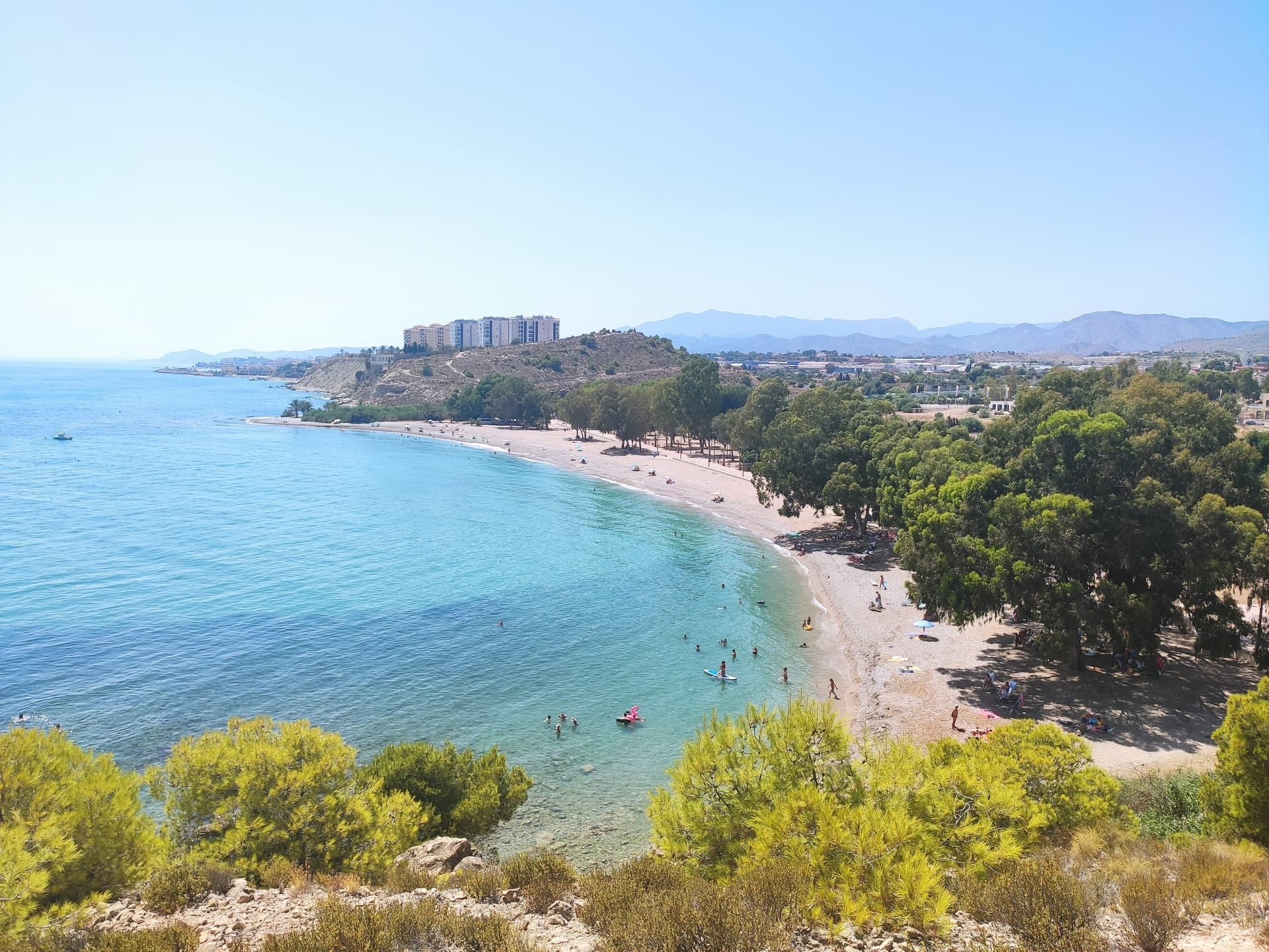 Пляж Торрес — це широкий природний пляж, розташований у тихій бухті на околиці міста Вільяхойос. Однією з головних особливостей місця є велика кількість зелені, що створює природну тінь навіть у спекотні години. Вода тут вирізняється чистотою та глибоким синім відтінком, що приваблює любителів каякінгу та дайвінгу. Поруч розташована історична пам'ятка — римська вежа Торре-де-Сан-Хосе, що додає локації особливого колориту. Це ідеальний вибір для тих, хто шукає спокійний відпочинок на природі з можливістю прогулятися прибережними стежками.