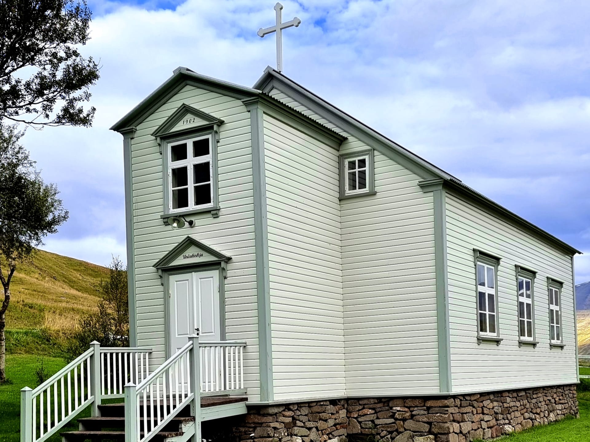 Біла церква Урда — історична дерев’яна церква, зведена у 1902 році після того, як попередню зруйнував шторм. Церква виділяється білим фасадом, яскраво-зеленим дахом та червоними деталями, що робить її неймовірно фотогенічною на фоні величних північних гір. Всередині збережено старовинний вівтар та атмосферу затишного парафіяльного приходу. Місце церкви згадується в давніх сагах, що підкреслює її багатовікову історію. Кладовище при церкві вважається одним із найгарніших у регіоні завдяки оточуючим його засніженим пікам.